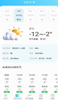 3、提供的天气情况是实时更新,用户可以第一时间了解到最新的天气情况,软件界面简洁,没有广告打扰。