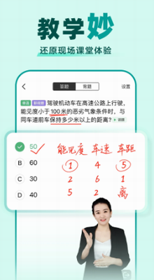 1、在线直播课:这款软件推出科目一、科目二、科目三、科目四的在线直播课,特邀经验丰富的驾考讲师,教学互动,高效学习快速掌握。