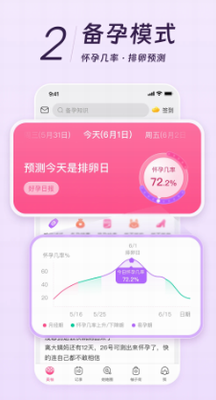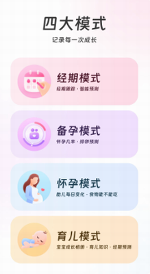 2、开启经期、备孕、怀孕、育儿四大模式,陪伴你从校服到婚纱,从少女到妈妈,不同时期可给你特殊的照顾。