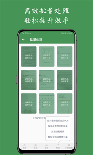 可批量扫描图片,批量文字识别,批量生成PDF,极大提高效率。