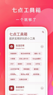 七点工具箱vip永久版是一款功能强大且十分实用的多功能工具箱软件,软件的页面整洁无犷告,功能分为七大类,包含生活日常、系统操作、图片处理,搜索查询、解析提取、文字工具和其他工具七个类型的功能,每一个大的分类下有很多小的工具,比如说图片处理展开后显示的所有工具都是针对图片处理的,非常实用,每一款都是免登录无限制使用,同时软件为用户提供丰富的功能和服务,包括小说阅读、娱乐、生活服务等,在这里你可以下载超多的应用资源,都是经过修改的,并且软件更是专业、免费、无广告、好操作,简明纯粹的主页与分类,既支持用户一键下载免注册登录即可快速在线操作,进行各种图片处理、数值计算、单位转换、亦或是快速搜索和常用网站导航等等,有效节省时间与操作成本,让您的生活和工作更加便利和高效。