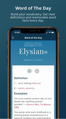 《韦氏词典app官方中文版免费下载》是一款功能强大实用的英语词典学习应用软件,软件包含了纸质版韦氏词典的所有内容,还包括了词汇、短语、例句、同义词、反义词等,用户可以通过搜索或浏览的方式查找单词的意思、用法、发音等信息,并且这款软件之中有很多的词汇,不仅仅是学到词汇的相关含义和注音,还有同义词和近义词以及反义词的注释,让你能够更容易地去消化学会的单词并进行联想。