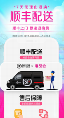 4、7天无理由退货,自营商品免费上门收件(自行寄回返10元唯品币)。