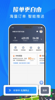 1、聚合多平台海量订单,智能匹配更精准,热力指引更高效,接单更自由。
