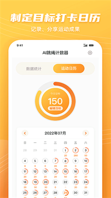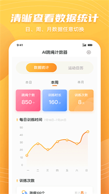 2、即时数据记录升级,由此可见每日,每星期,每月跳绳次数。