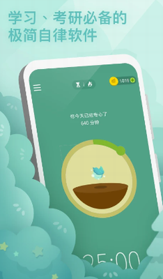 伴随着画面中生长的小树,成就感以及责任感会帮助您暂时远离手机,全心投入到手边的工作,提升效率与建立自律的生活习惯。