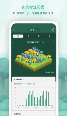 4、以森林记录每一天的专注情形,看看昨天您多么努力,而今天是否有所进步。