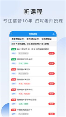信管网app下载安卓版是一款非常好用的在线教育手机软件,主要面向社会各阶层的广大软考中高级考证人群,其中包括软考资讯、考试咨询、考试报名、真题下载、学习资料下载、项目管理学习、项目咨询与教育辅导服务。该应用覆盖了计算机科学、信息技术、网络安全和数字营销等领域的最新动态,为用户带来实用的职业发展指导和技术知识。软件上面包含了软考复习当中的各种内容,让各个用户都能够在这款软件上面完美的通过软考!感兴趣的朋友快来下载吧。