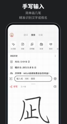 moji辞书破解版是一款非常好用的日语学习软件,软件采用清新简洁的用户界面设计,整体操作十分丝滑流畅,使用步骤也非常简单易懂,致力于带给用户舒适的使用体验。你可以在这里找到最全面最专业的日语词典翻译,它不仅提供基本的释义和词汇解释,还包括例句、同反义词、发音、词源、语法等详细信息,为用户提供全面的语言学习资源。多种内容十分丰富,用户可以根据自己的需求选择学习,非常人性化。感兴趣的朋友快来下载吧。