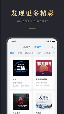 《大唐兴亡三百年(全集)》、《资治通鉴(最爱读国学系列)》、《张大春细说三国》、《蒋勋细说红楼梦》、《明朝那些事儿》、《驻京办主任》、《侯氏笔记(侯卫东官场笔记)》等优质讲书,帮你释放双眼。