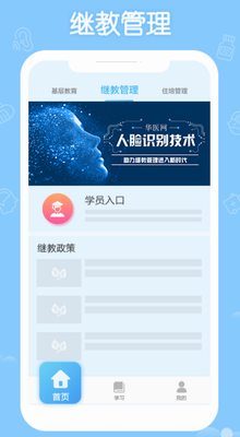 4、继教管理:人员基本信息、学习情况、达标情况、考勤登记;