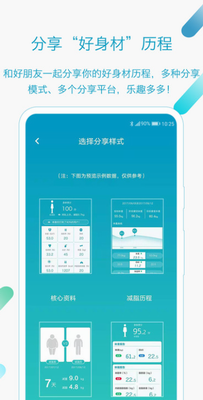 2、分享“好身材”历程好身材提供了多个渠道数据分享,和好朋友一起分享你的好身材历程,多种分享模式、多个分享渠道,乐趣多多!