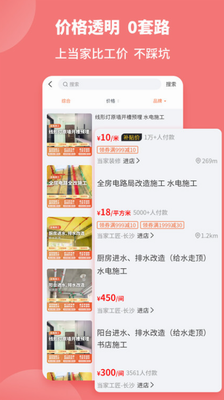 业主可以一键调用装修过程中所需要的工匠,中间不需要装修公司,不需要包工头,工钱即工价。