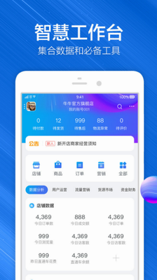 1. 工作台:提供店铺关键数据,以及任务、交易、商品等常用操作入口