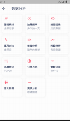 还会提供详细的数据分析,通过数据分析,就能知道自己的吸烟情况了;