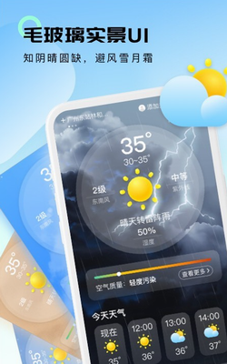 1、用实景天气作为背景,打开轻云天气马上就能知道窗外天气