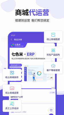 七色米erp官网下载是一款相当优秀的数字化营销管理服务平台,软件功能全面,便捷好用,支持多种终端使用,主要是用于进货和管理库存的,有了这个软件,进货、销售、库存都变得非常方便!这里包含了各大营销体系,帮用户深度剖析,是店铺经营的更好。以数字化理念,让商家和顾客通俗易懂,省时省力。操作简单,方便快捷。感兴趣的用户,欢迎使用下载。