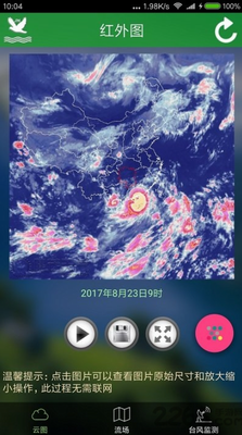 卫星云图官网下载2024是一款全新上线的天气预报查询软件,它是通过卫星云图给用户们提供详细的天气信息,台风、雨雪和强降雨等都能一键快速查询,包括红外图、雷达图、水汽云图、降雨预报图等等,非常的全面,非常的精准。让用户可以通过识别云图动向来预测未来天气情况,软件支持查询历年台风实况与预报,为用户生活出行提供便利,感兴趣的朋友不要错过哦。