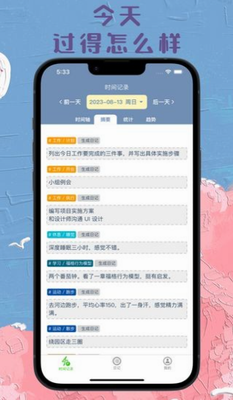 其中将用户进行时间记录的各项数据信息进行了统计分析,便捷用户查看