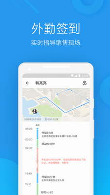 外勤签到位置可到10米以内,无论是现场拍照还是调取照片,都可以添加实时水印;