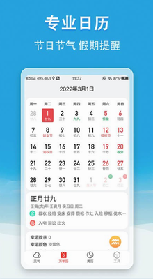 【日历】月视图、周视图、黄历宜忌、节假日查询、生日、纪念日等功能。