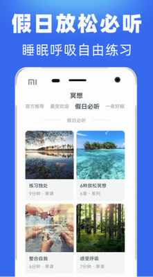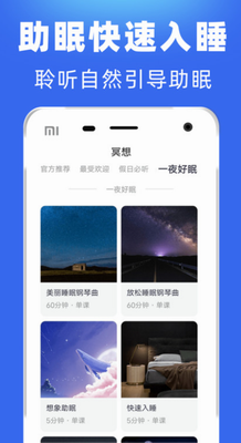 - 改善睡眠质量问题:通过冥想引导,呼吸练习,睡眠音乐等定制化方案与练习工具解决失眠、睡眠质量不佳等问题。