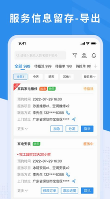 输入联系人姓名或者手机号即可帮助你快速的查找到对应的服务订单