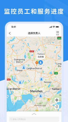 支持在地图中查看各个师傅的集体服务进度内容,以及当前师傅所在的具体位置