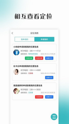 软件提供了简单的位置守护功能,还可以自行申请查看关心之人的实时位置和历史轨迹~
