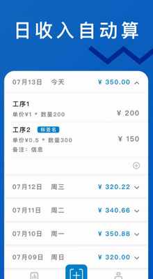 首页日期列表即可根据工序或工作种类记录每天完成的件数;