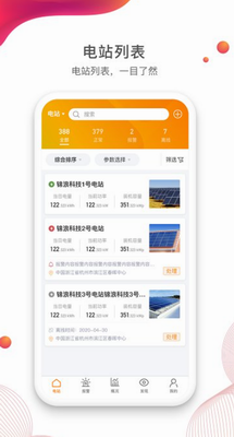 2、能够直观的看到每个电站当前数据概览,了解每日发电数据信息;