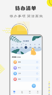 2.专注功能:可以一键开始专注,专注可以使用正计时服务、倒计时服务、或者锁机服务,可以选择待办事项去开启专注,让您在工作学习中不被手机影响,专注高效