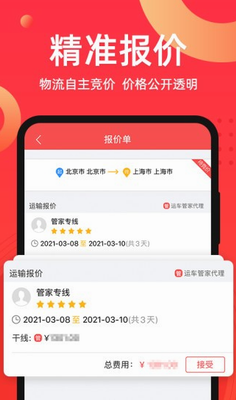 运车管家app下载官网版是一个为物流运输行业提供的便捷管家app,你可以通过它实时的接受物流运输订单,与司机的沟通也会非常的便捷,司机可以有效的管理车辆哦!通过软件用户可以选择相关物流信息,来寻找司机送货,司机也可以在线查看物流订单信息,让物流运输效率得到提升。并且还能实时查看物流信息,一键输入起点和终点,还能帮你精准估价,保证可以令你用起来爱不释手!需要的用户们快来下载体验吧!