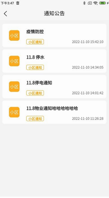 3、物业发布的所有公告都会在软件中显示,业主可以随时的了解。