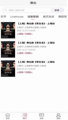 软件中自动为用户推荐有各种优质的演出信息,便捷用户快速查找选择