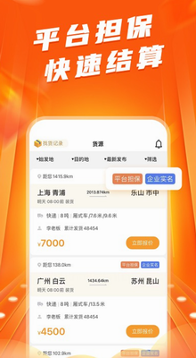 3、货源广场:将全国各城市的货物运输订单详细情况展现给你。