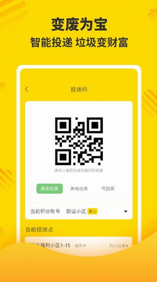 投递码:专属垃圾投递扫码,用户可以扫码投递码获取垃圾上门代取服务,绿色环保;