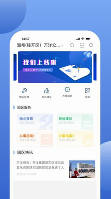 园区服务,提供线上多个园区服务查看入口,突出服务的主动性;